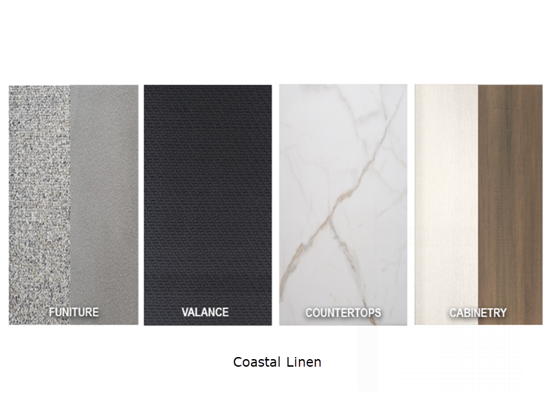 Sleeps 9 Slides 1 Length 33 ft 9 in Ext Width 8 ft Ext Height 11 ft 2 in Int Height 6 ft 9 in Interior Color Coastal Linen Hitch Weight 760 lbs GVWR 7900 lbs Dry Weight 6330 lbs Cargo Capacity 1570 lbs Fresh Water Capacity 42 gals Grey Water Capacity 39 gals Black Water Capacity 39 gals Tire Size ST205/75R14'D Furnace BTU 30000 btu Number Of Bunks 2 Available Beds RV Queen Refrigerator Type 12V Refrigerator Size 8 cu ft Cooktop Burners 3 Number of Awnings 1 LP Tank Capacity 30 lbs Water Heater Capacity 6 gal Water Heater Type Gas/Electric DSI AC BTU 13500 btu TV Info LR 50" TV Awning Info 18' Power with LED Lights Axle Count 2 Number of LP Tanks 2 Shower Type Standard Similar Floorplans
