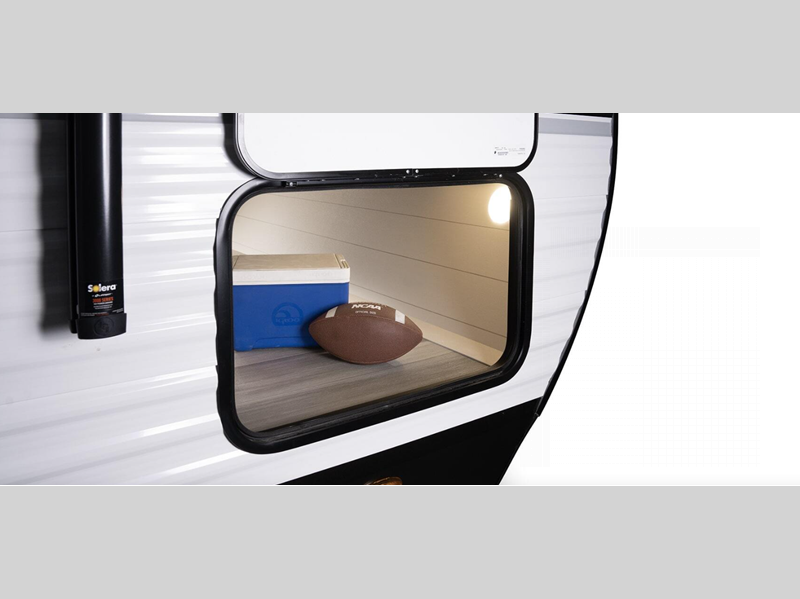 Sleeps 3 Length 22 ft 11 in Ext Width 8 ft Ext Height 10 ft 6 in Int Height 6 ft 9 in Interior Color Coastal Linen Hitch Weight 380 lbs GVWR 4650 lbs Dry Weight 3605 lbs Cargo Capacity 1045 lbs Fresh Water Capacity 20 gals Grey Water Capacity 20 gals Black Water Capacity 20 gals Tire Size ST225/75R15D Furnace BTU 18000 btu Available Beds RV Queen Refrigerator Type 12V Refrigerator Size 8 cu ft Cooktop Burners 2 Number of Awnings 1 LP Tank Capacity 20 lbs Water Heater Capacity 6 gal Water Heater Type Gas/Electric AC BTU 13500 btu Awning Info 13' Power with LED Lights Axle Count 1 Number of LP Tanks 1 Shower Type Standard Similar Floorplans