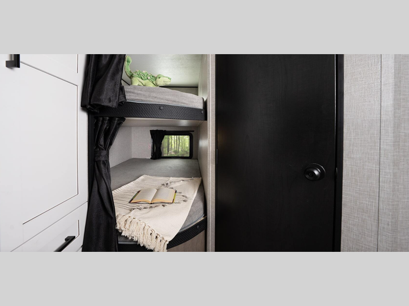 Sleeps 5 Length 22 ft 4 in Ext Width 8 ft Ext Height 10 ft 7 in Int Height 6 ft 9 in Interior Color Coastal Linen Hitch Weight 395 lbs GVWR 4995 lbs Dry Weight 3540 lbs Cargo Capacity 1455 lbs Fresh Water Capacity 20 gals Grey Water Capacity 20 gals Black Water Capacity 20 gals Tire Size ST225/75R15D Furnace BTU 18000 btu Number Of Bunks 2 Available Beds RV Queen Refrigerator Type 12V Refrigerator Size 8 cu ft Cooktop Burners 2 Number of Awnings 1 LP Tank Capacity 20 lbs Water Heater Capacity 6 gal Water Heater Type Gas/Electric DSI AC BTU 13500 btu Awning Info 13' Power with LED Lights Axle Count 1 Number of LP Tanks 1 Shower Type Tub/Shower Combo Similar Floorplans