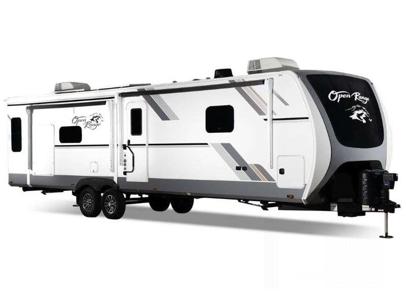 The Highland Ridge Open Range travel trailers offer innovative features such as the TravelLink Smart RV system, luxurious amenities, and are built with TuffShell walls and one of the strongest roofs in the industry.
