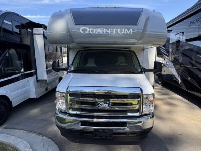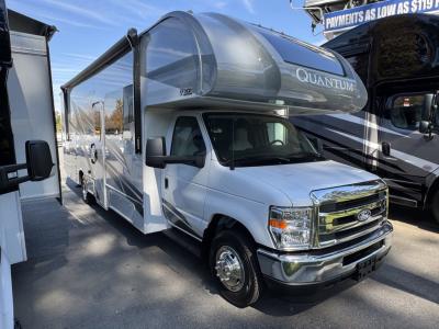 With any Quantum Class C gas motorhome by Thor Motor Coach, you will find a premium one-piece domed roof membrane for added durability, plus a SmoothTECH ride enhancement for better handling. The interior offers residential vinyl flooring, Leatherette furniture, and full extension soft close metal ball-bearing drawer guides. The driver is sure to appreciate the touchscreen dash radio and back-up monitor to make maneuvering in and out of campgrounds easier than ever. These motorhomes also feature a 100-watt solar charging system for off-grid capabilities, a tankless water heater, an exterior LP connection and many more conveniences.